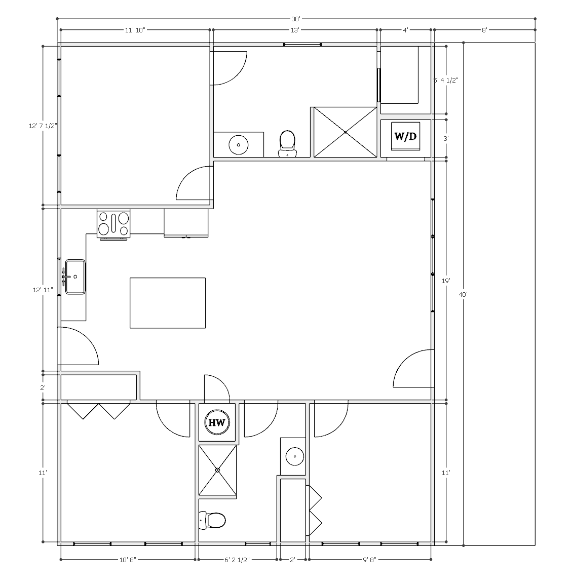 Modest 2 bed, 2 bath cabin with just enough of a foot print for long term living.